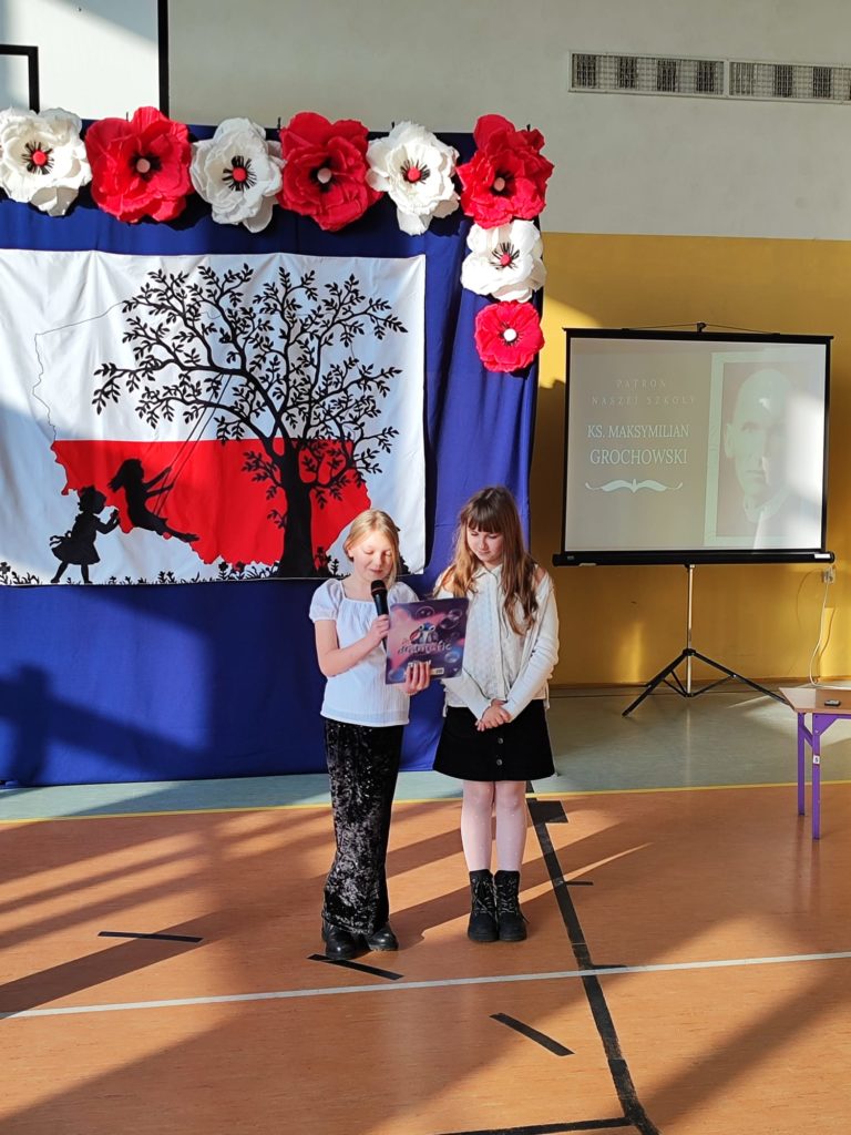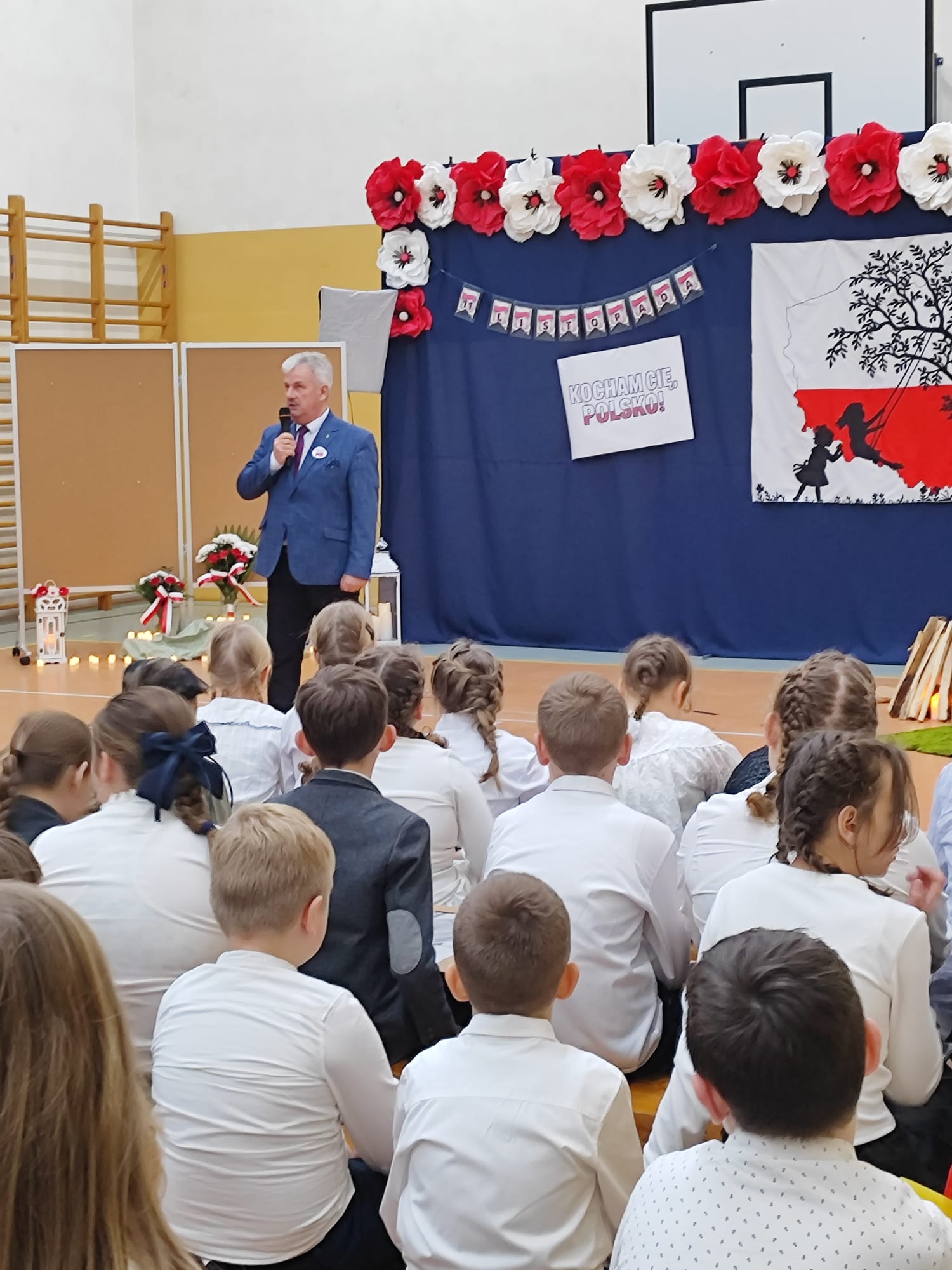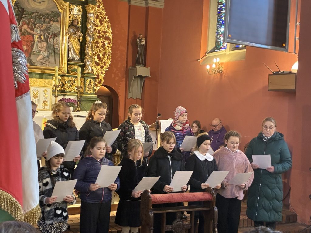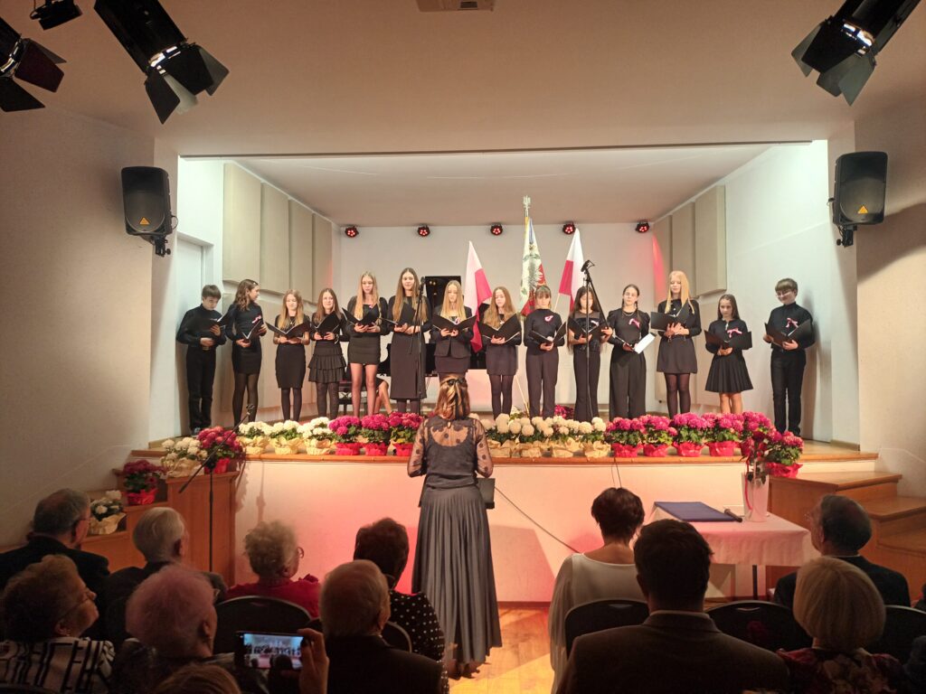 Wspólne śpiewanie pieśni patriotycznych z chórem szkolnym.
