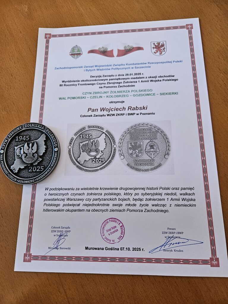 Wśród uczestników przedstawiciele Wielkopolskiego Zarządu Wojewódzkiego Związku Kombatantów RP i Byłych Więźniów Politycznych w Poznaniu: Mariusz Mikołajewski – I Wiceprezes WZW oraz Wojciech Rabski – Członek Prezydium WZW, którzy