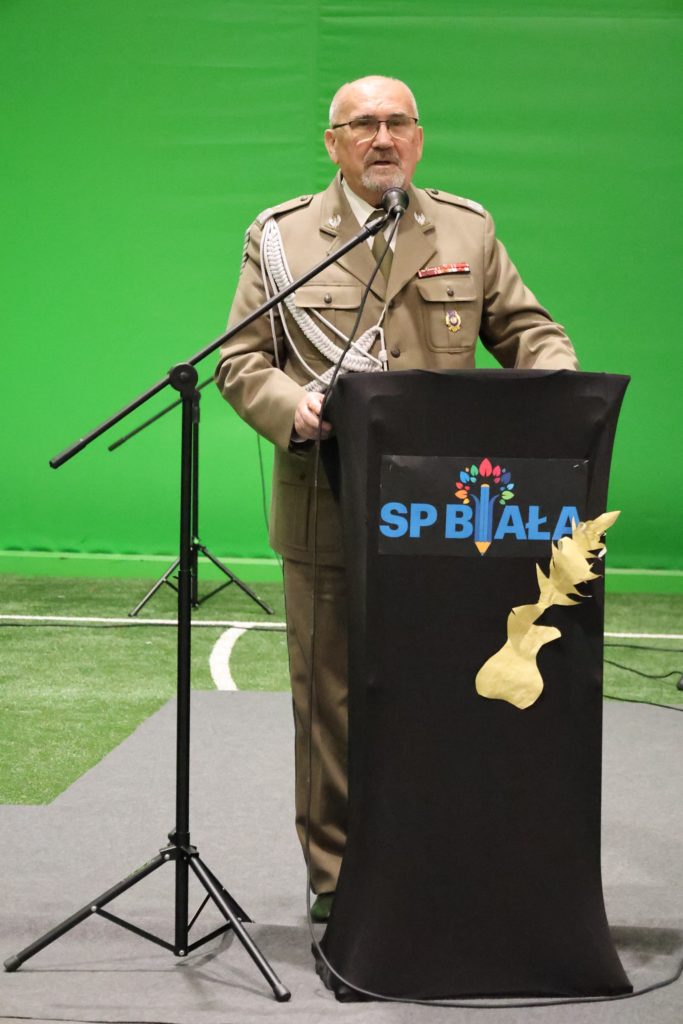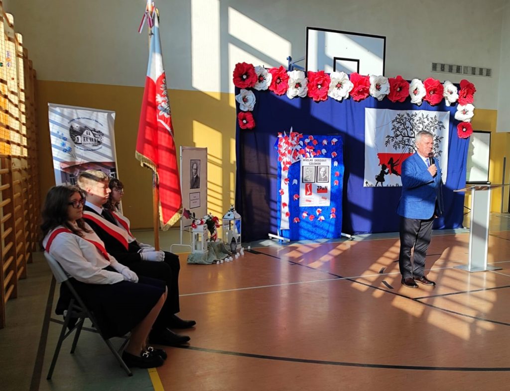 a także harcerze ZHP i ZHR, przedstawiciele organizacji społeczno-politycznych, dyrektorzy placówek oświatowych i młodzież szkolna. „Dzięki znajomości minionych faktów możemy trafnie określić punkt, w którym się obecnie znajdujemy i skutecznie dobierać środki do podążania ku przyszłości. Dlatego nie możemy zniweczyć wysiłku poprzednich pokoleń i za ich przykładem razem szukajmy sposobów osobistego uczestnictwa w ulepszaniu dnia dzisiejszego” – powiedział w swoim wystąpieniu dyrektor ZS nr 1 Dariusz Grzesik. Apel poległych odczytał emerytowany wicedyrektor, pasjonat historii Wacław Mucha-Kruczyński. Poruszającą część artystyczną na cześć swojego patrona przygotowała młodzież Zespołu Szkół