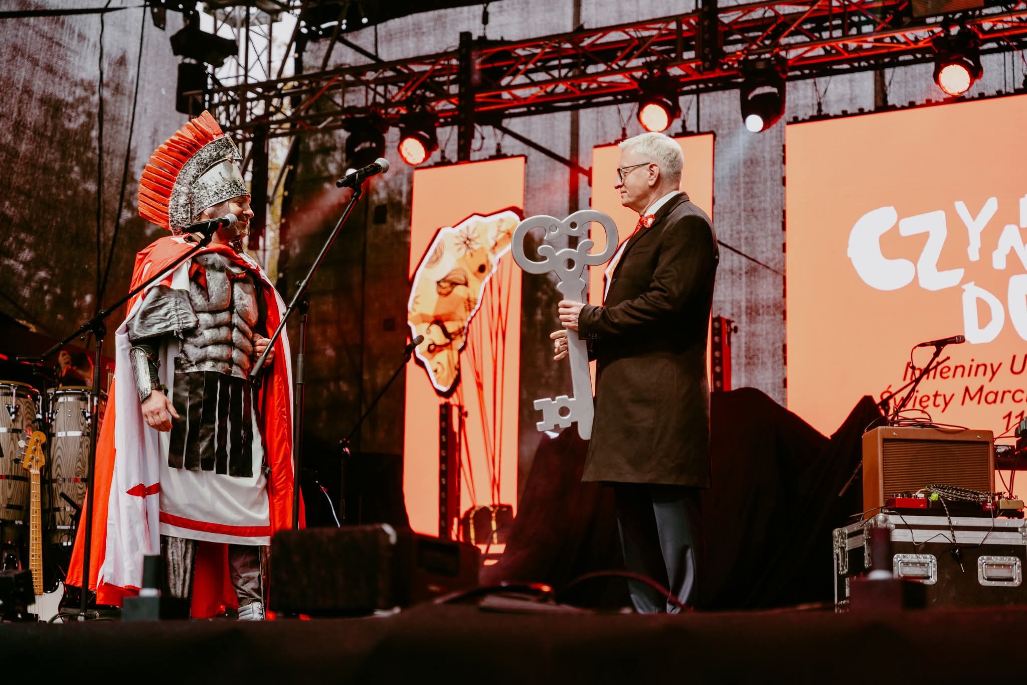 Uczestnicy wraz z orkiestrą i prowadzącym Damianem Skoczypiecem – Dyrektorem Artystycznym i organizatorem wydarzenia mieli możliwość śpiewać znane i lubiane pieśni patriotyczne.