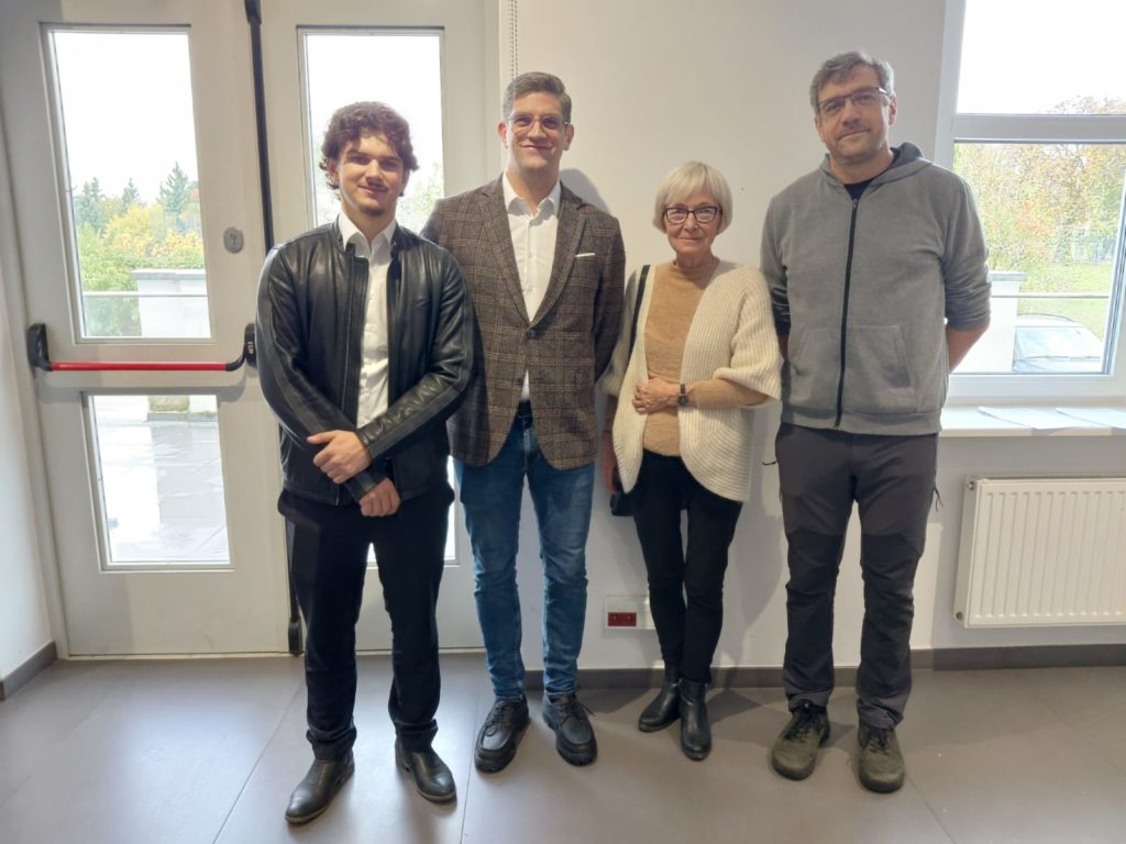 Pod pamiątkowy głaz powstańczy przy Zespole Szkół nr 1 przybyli także przedstawiciele samorządu miasta i gminy Ostrzeszów – burmistrz Patryk Jędrowiak, przewodniczący Rady Miejskiej Ostrzeszów Tomasz Kosmala i wiceburmistrz Marcin Łuczak,