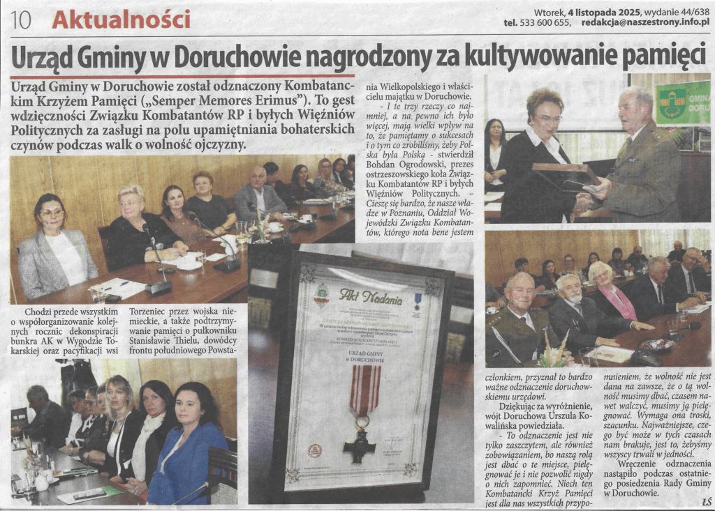 W tygodniku Twój Puls Tygodnia z dnia 4 listopada 2025 roku ukazał się artykuł „Kombatancki Krzyż Pamięci dla Doruchowa”.