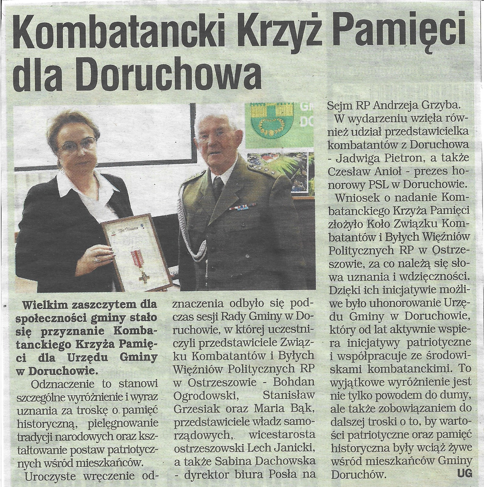 W tygodniku Twój Puls Tygodnia z dnia 4 listopada 2025 roku ukazał się artykuł „Kombatancki Krzyż Pamięci dla Doruchowa”.